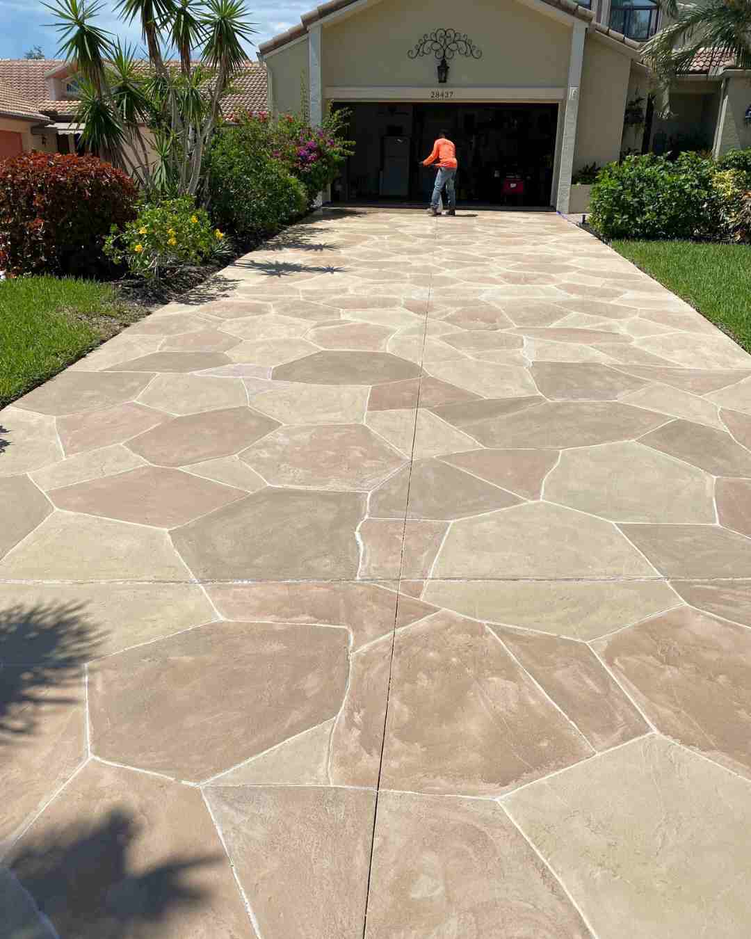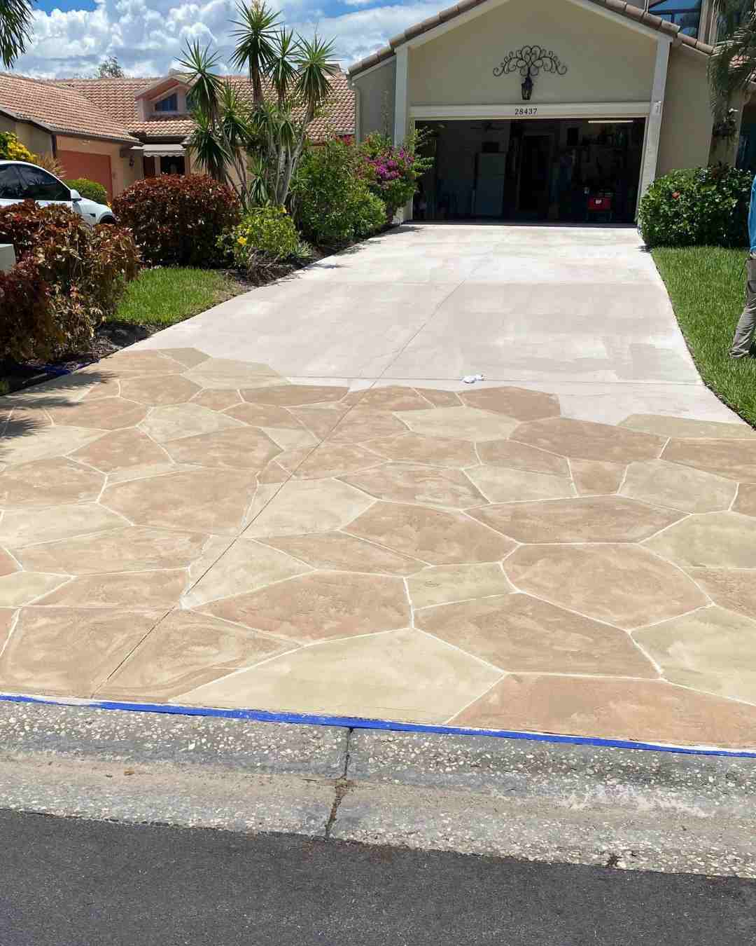 This Fort Myers driveway was transformed with our Stamped Concrete Resurfacing solutions. Durable as it is stunning with low maintenance.